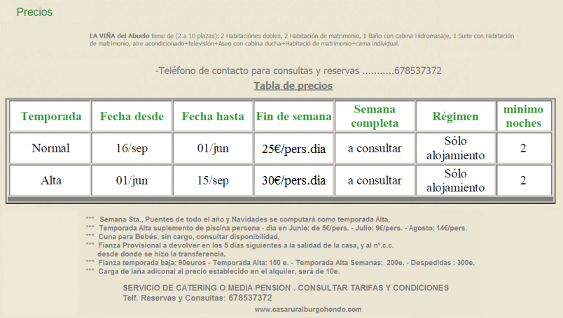 ** Fianza en temporada baja 90€, Temporada Alta 150€, Despedidas 300€